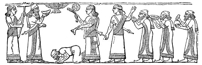 Assyrian Commoners, Court Official & Nobleman - History of Costume (1880)